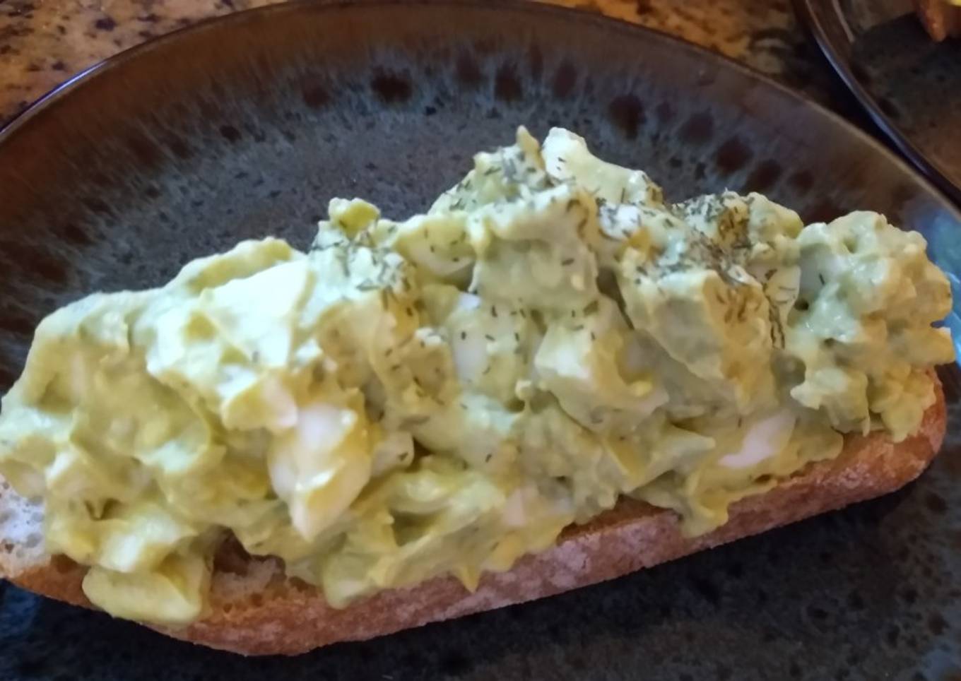 - In a bowl mash avocados, mayonnaise, and eggs together. Add salt and lemon juice. Toast ciabatta. Spread avocado mixture onto toast and dash with dill.