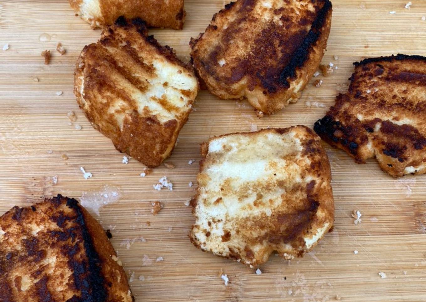 - Place slices on grill, this can burn quickly 2-3 mins for each side or see picture. Should look like this.