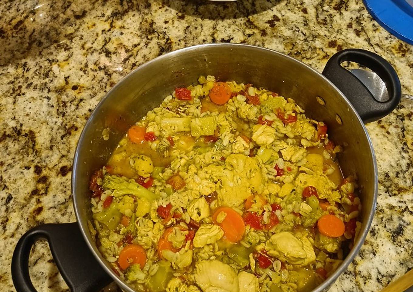 Simple Way to Prepare Super Quick Homemade Spicy Chicken,Vegetable, and Barley soup